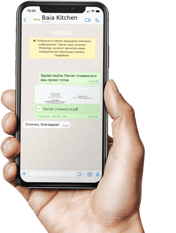 «Очень довольны новой кухней! Замерщик приехал в день обращения, проект сделали за два дня, а установка заняла всего несколько часов. Спасибо!»
